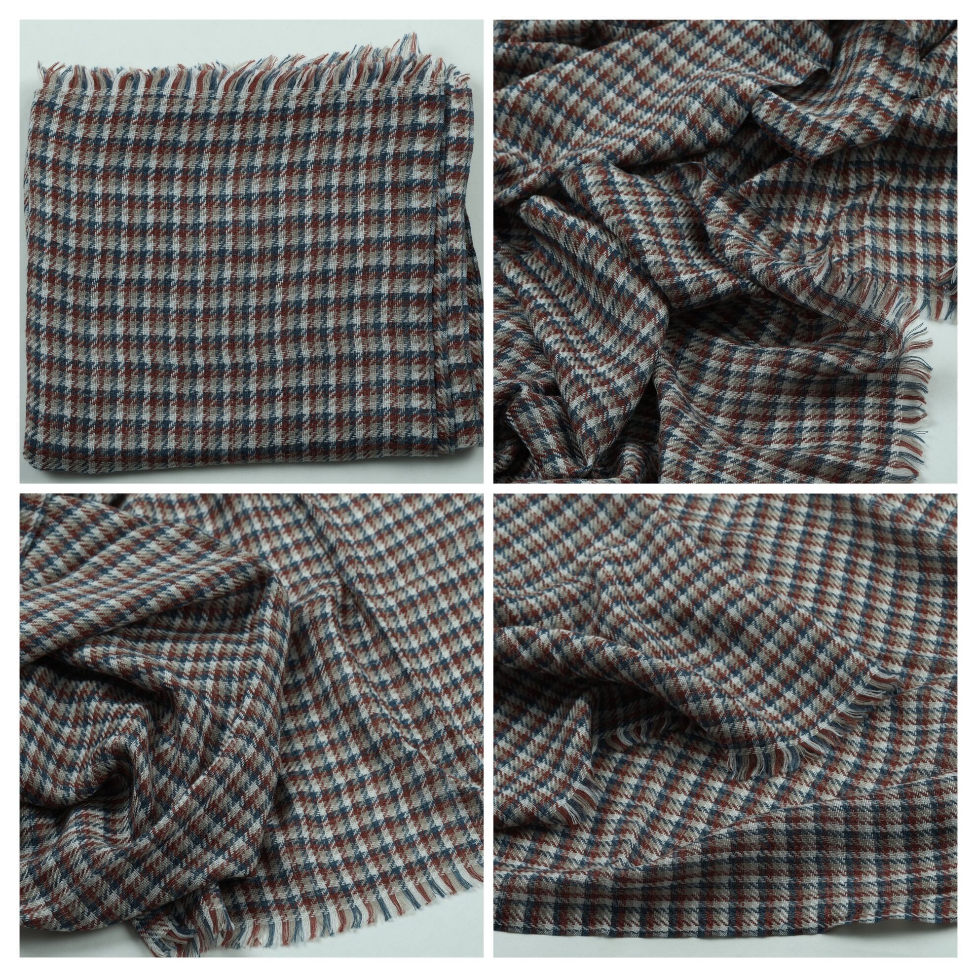 Kašmírová šála FRECCIA modročervená kohoutí stopa s béžovou