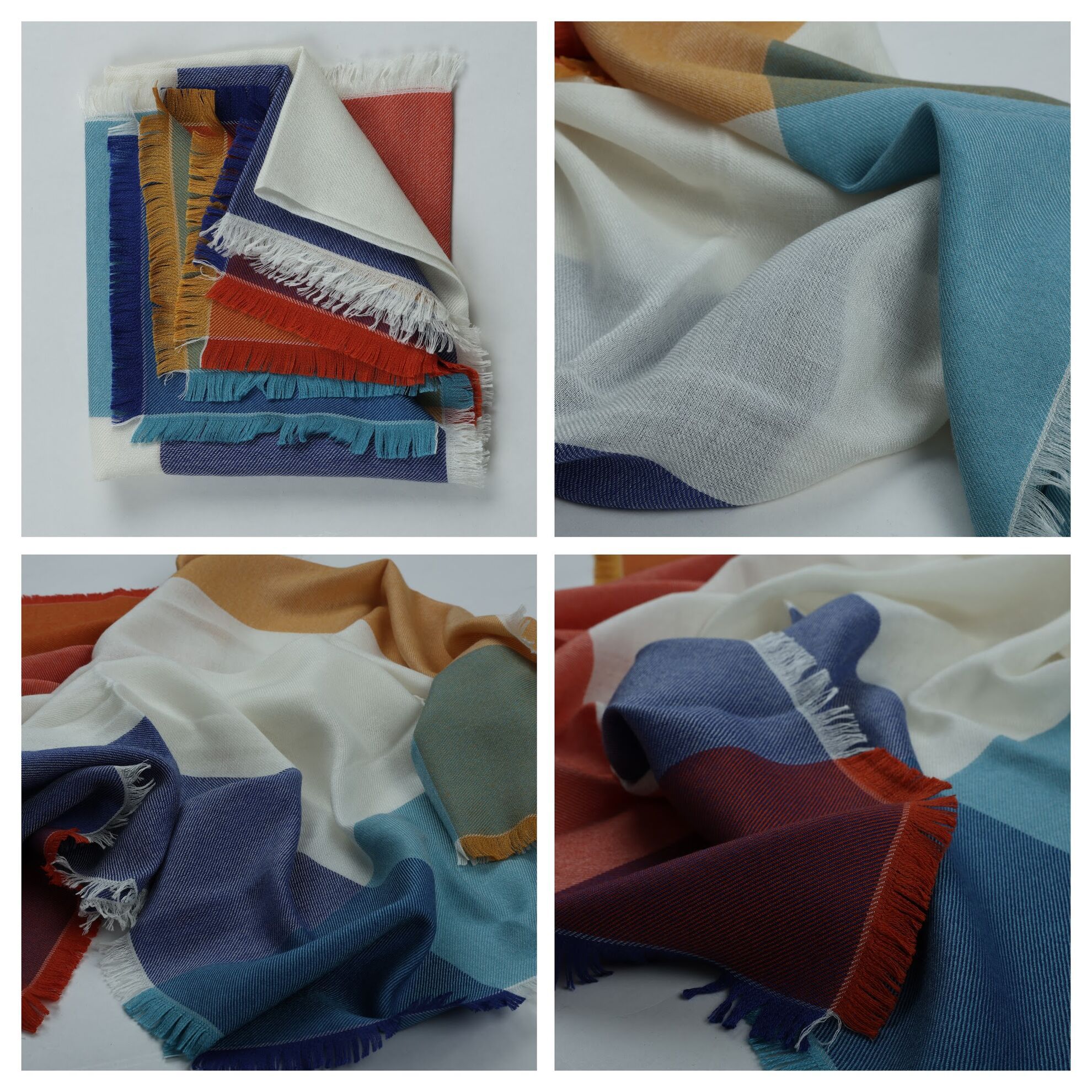 Kašmírová šála utkaná z těch nejjemnějších kašmírových vláken, která je symbolem udržitelného luxusu a komfortu.