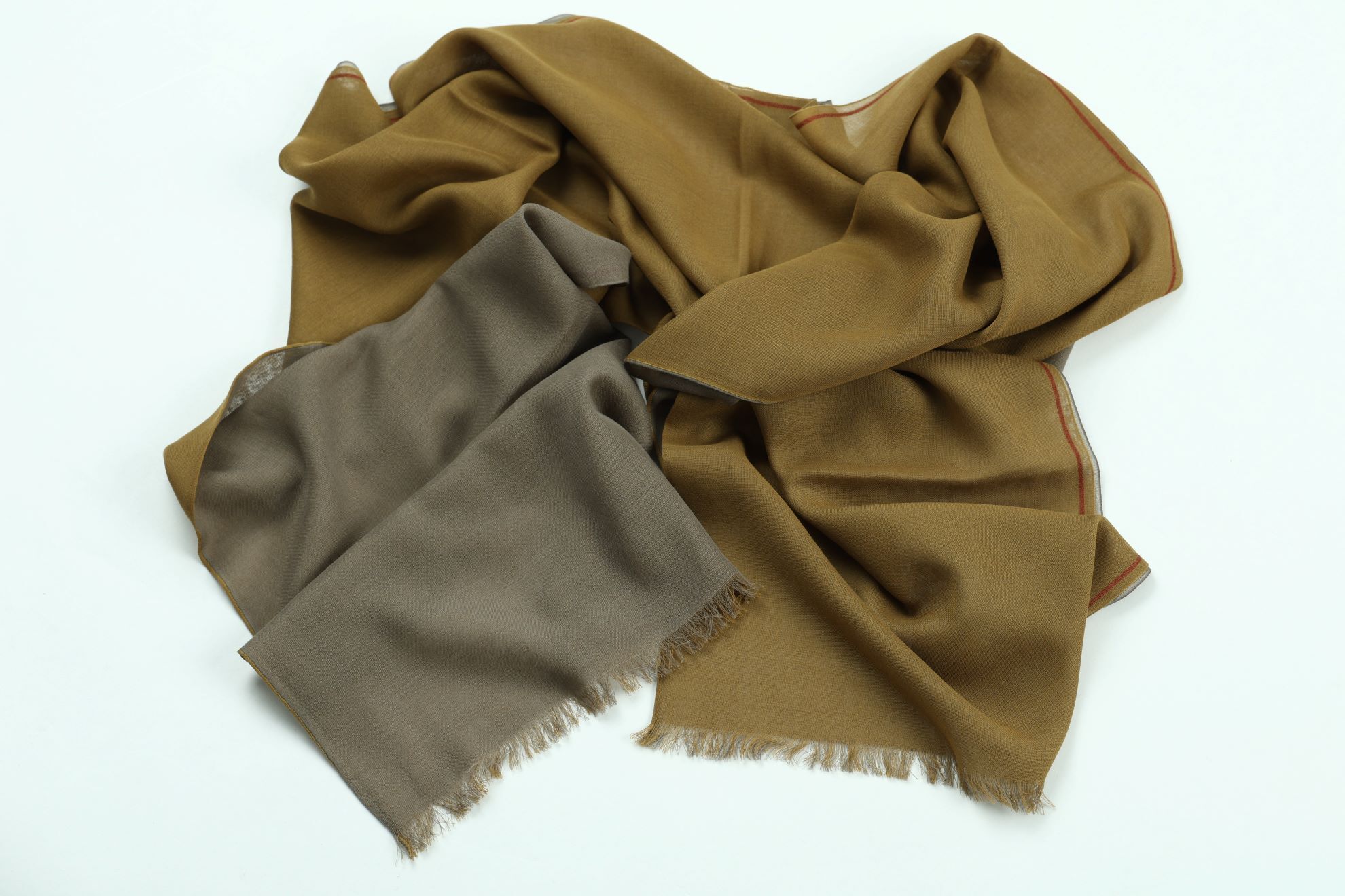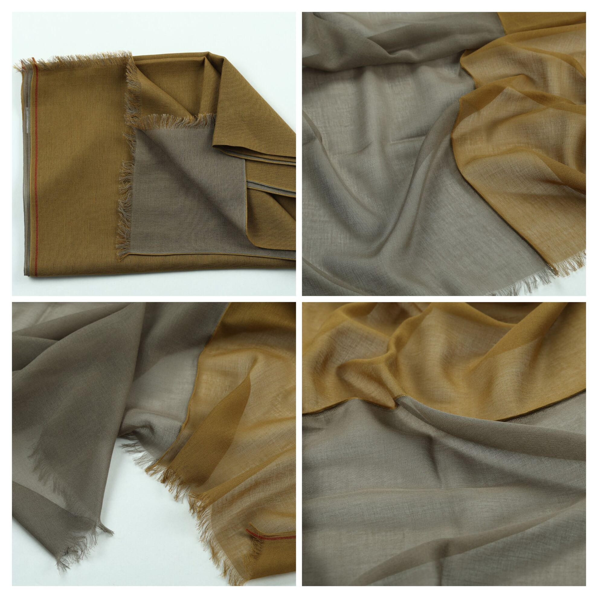 Kašmírová šála s hedvábím DUE COLORI hořčicová a béžová