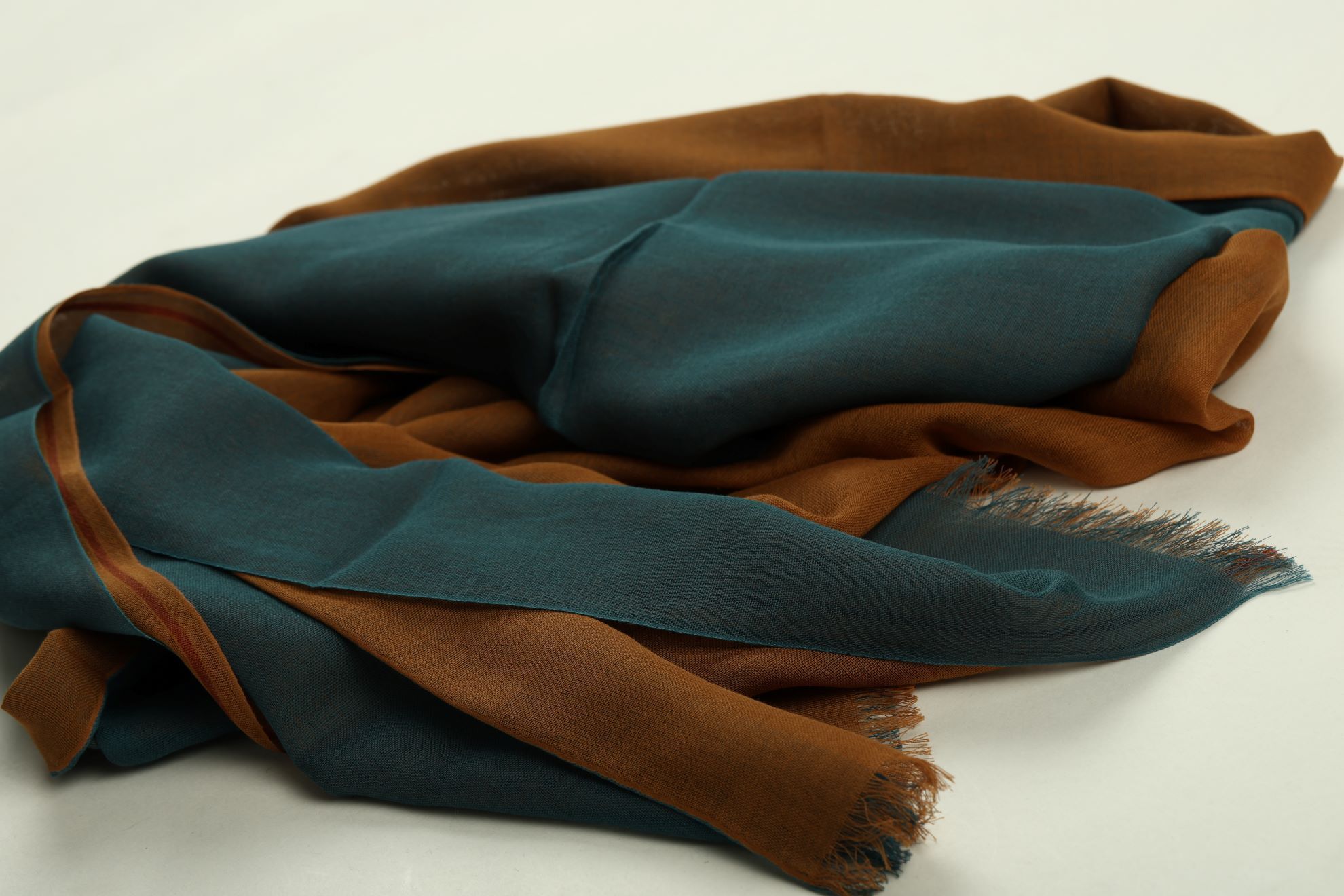 Kašmírová šála s hedvábím DUE COLORI rezavá a tyrkysová