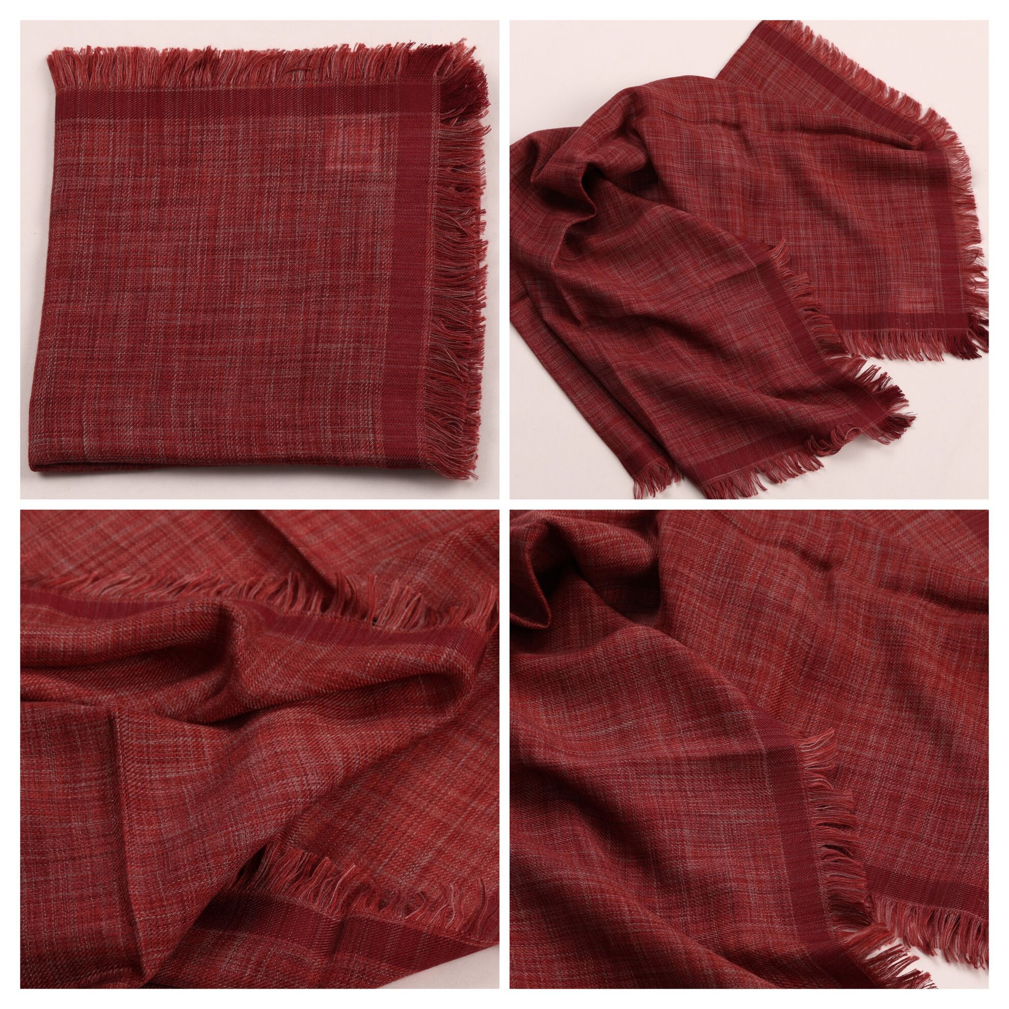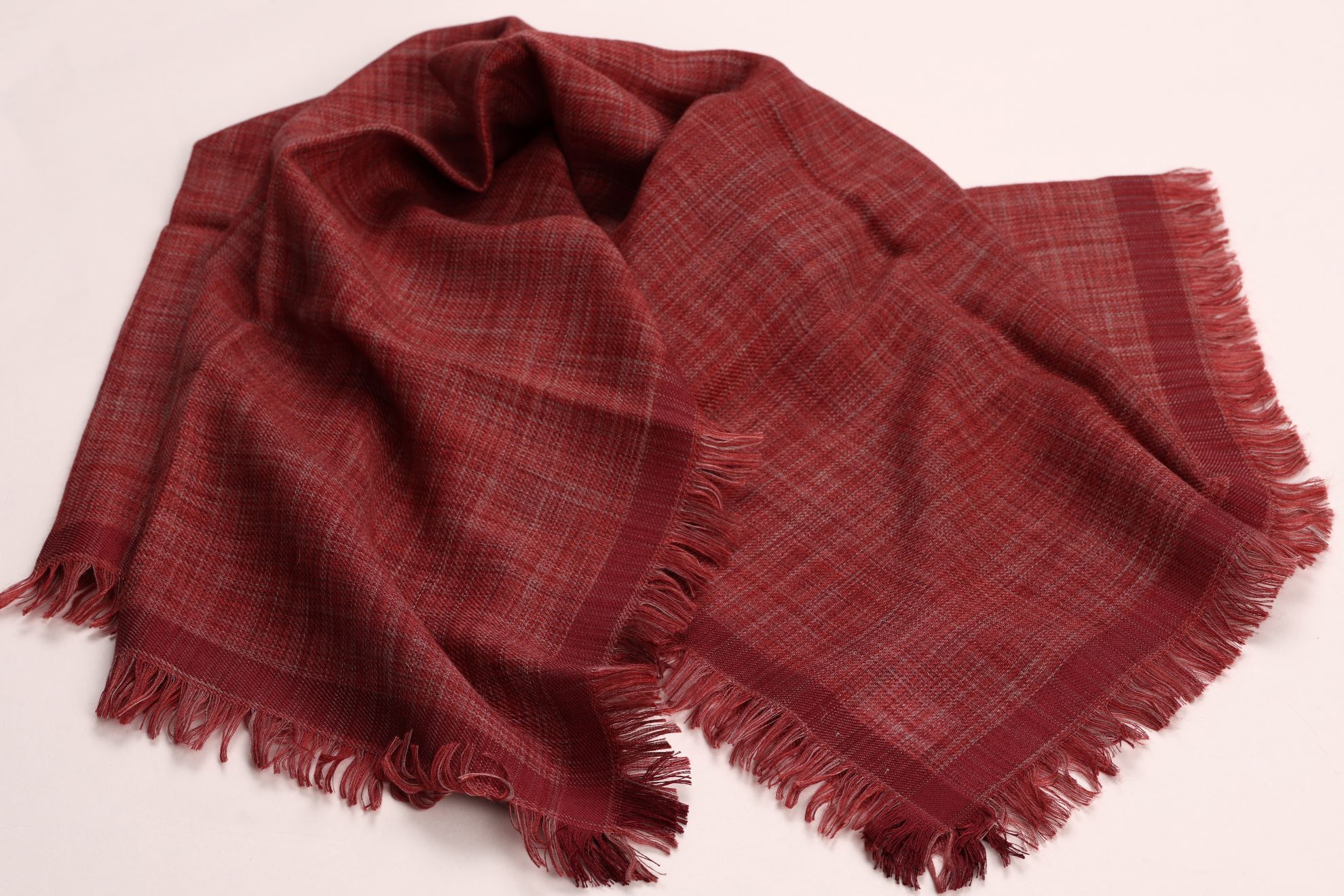 Kašmírová šála s hedvábím barvy cihlově červeného melíru. Utkaná z těch nejjemnějších kašmírových vláken, která je symbolem udržitelného luxusu a komfortu.
