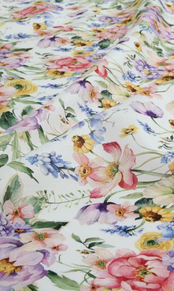 Jemný bavlněný krep s květinovým vzorem Cumino