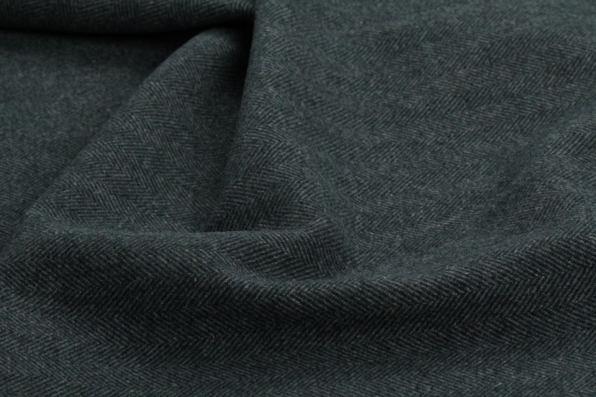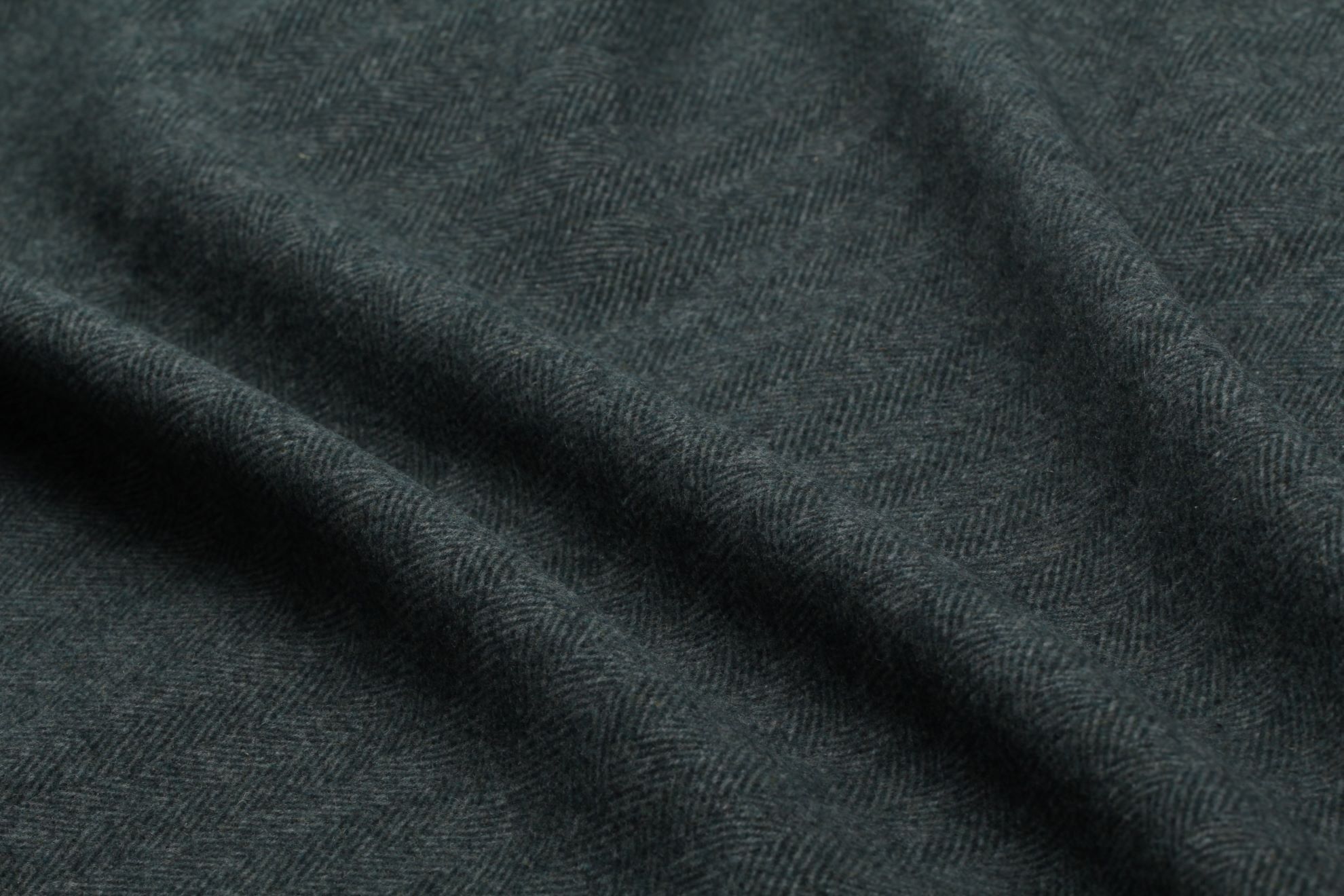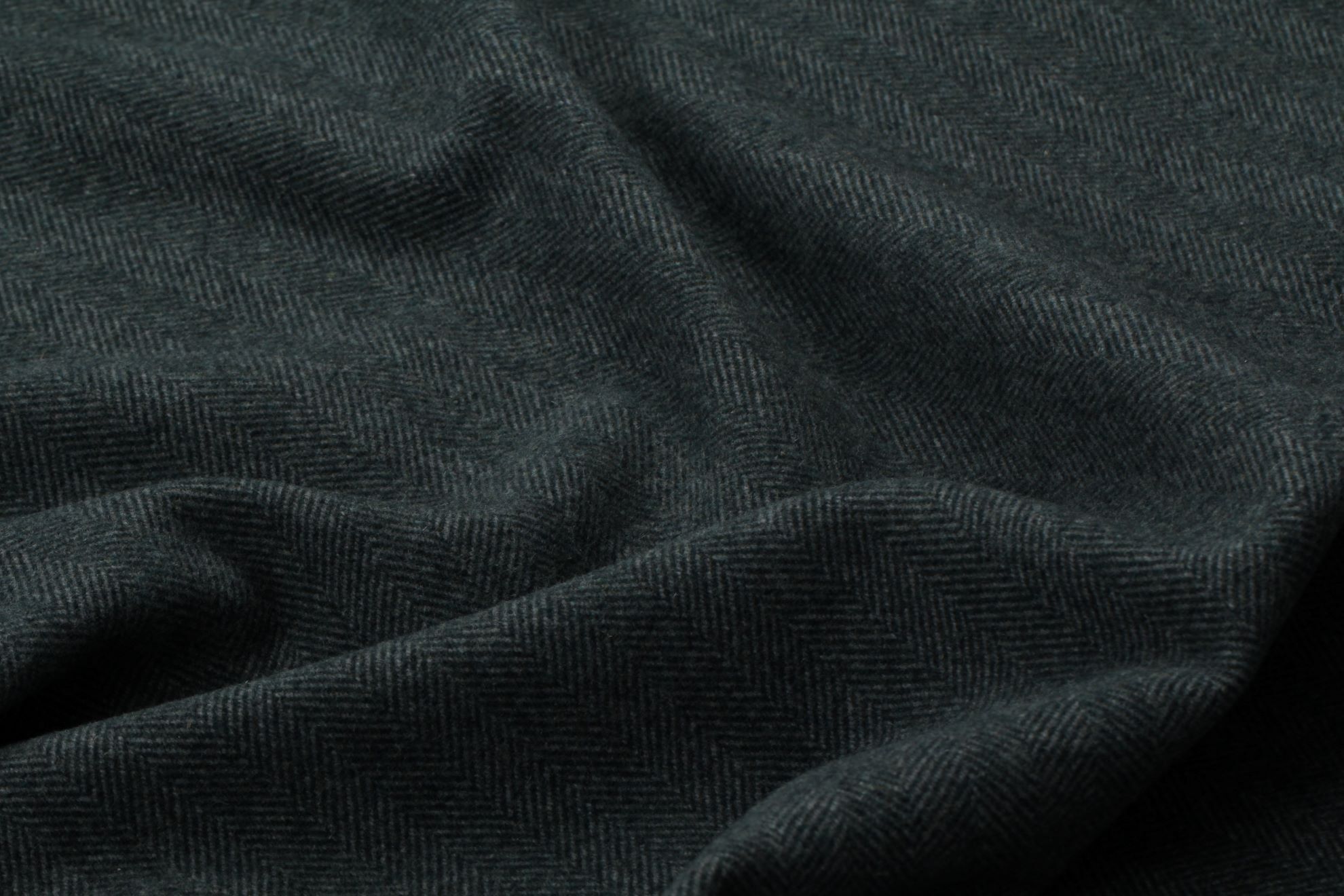 Měkký a hřejivý vlněný tvíd s kašmírem v zastřeném melíru vzoru rybí kosti v barvách lahvově zelené. Doporučujeme na kabát, peacoat, teplý blejzr nebo dámský zimní kostým.