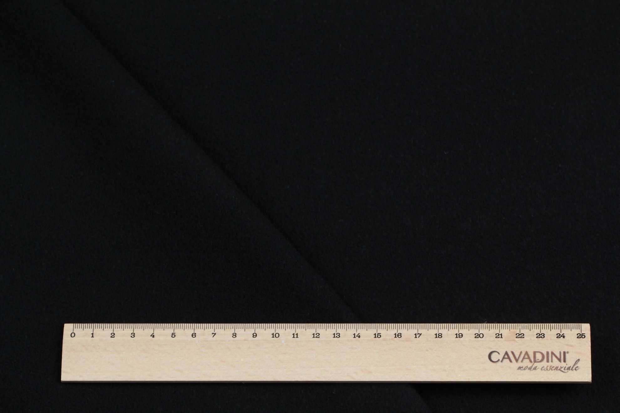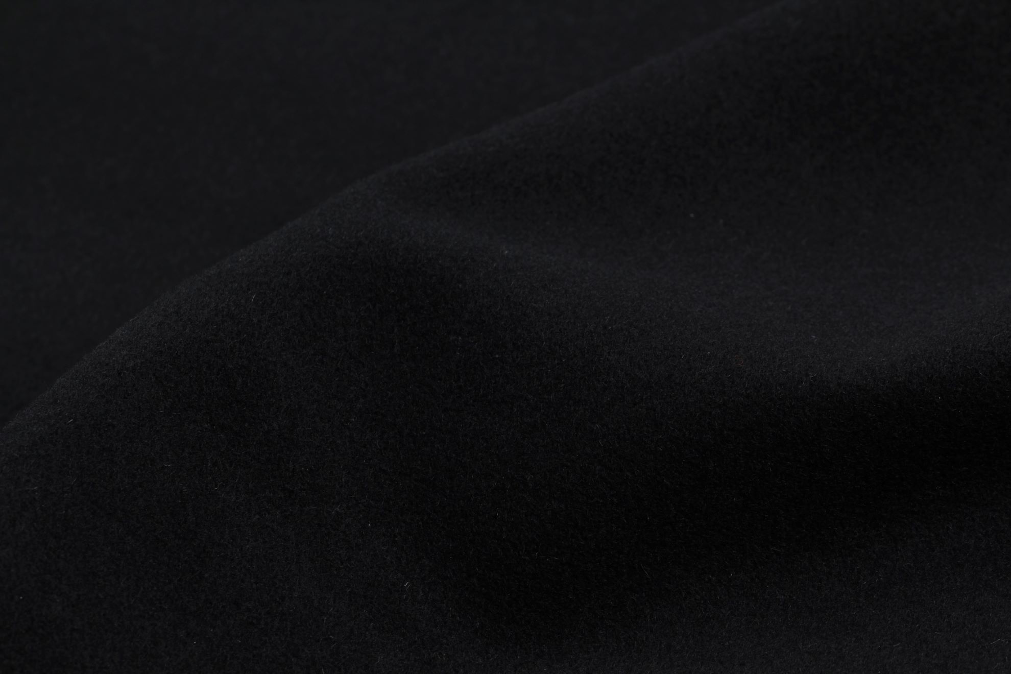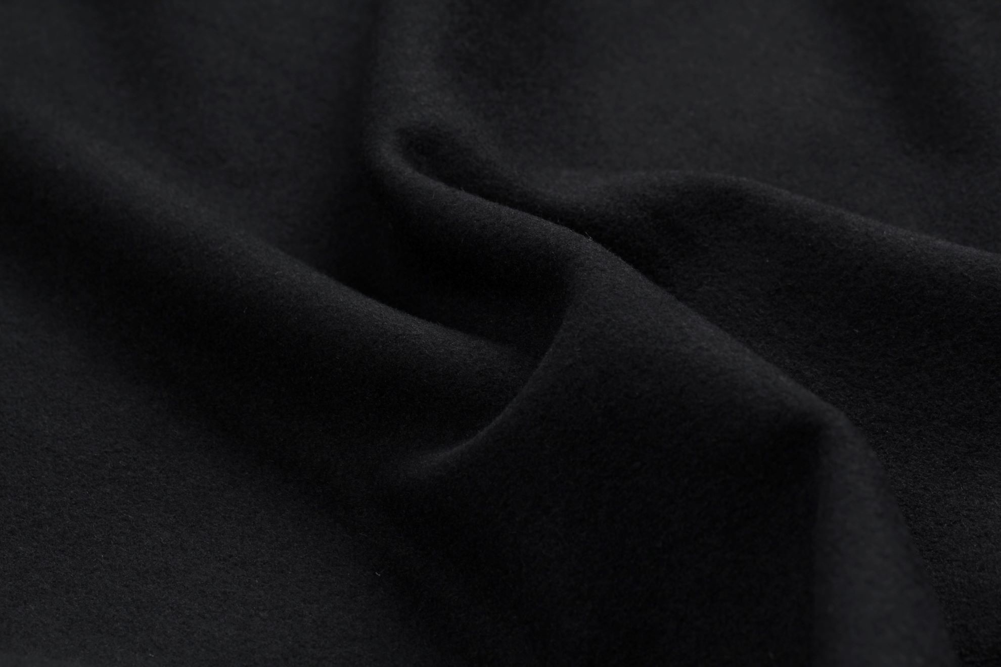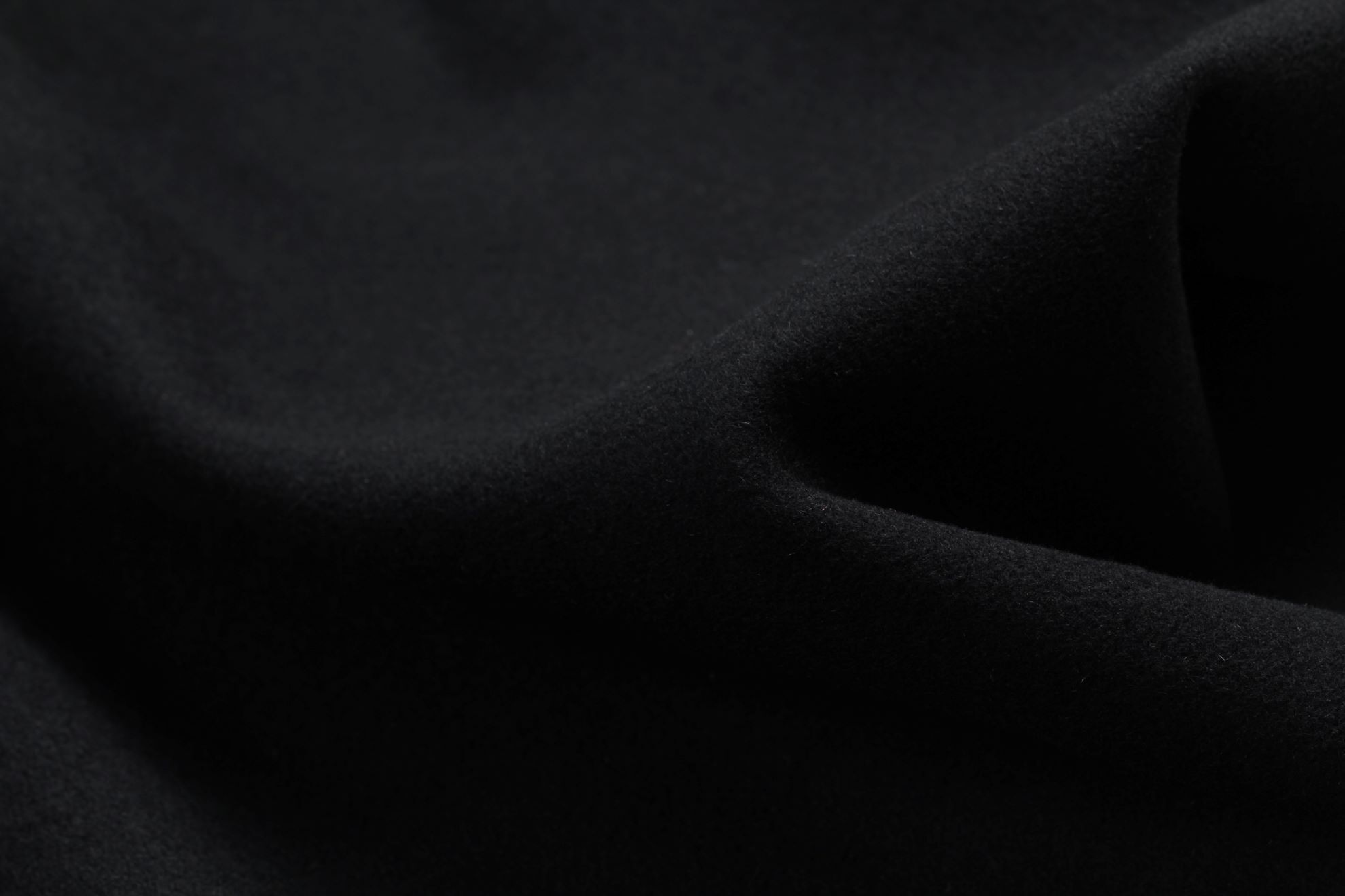 Klasická černá vlna s polyesterem je poddajná, umělé vlákno drží tvar. Vhodná na každodenní kabát, kabátek.