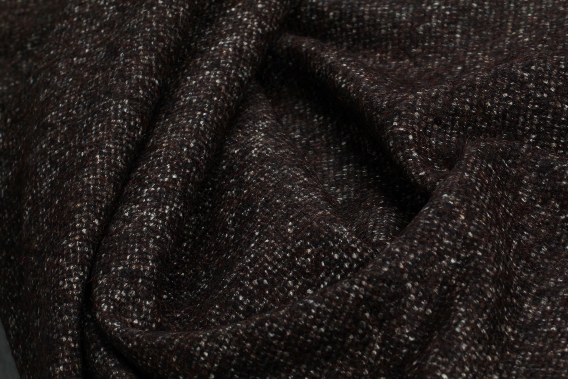 Luxusní kabátovka se vzorem kohoutí stopy v barvě slonové kosti a hořké čokolády s jemným vlasem. Velmi hřejivá pro své složení i vyšší gramáž, je poddajná a dobře se tvaruje. Vhodná na kabáty, kabátky.