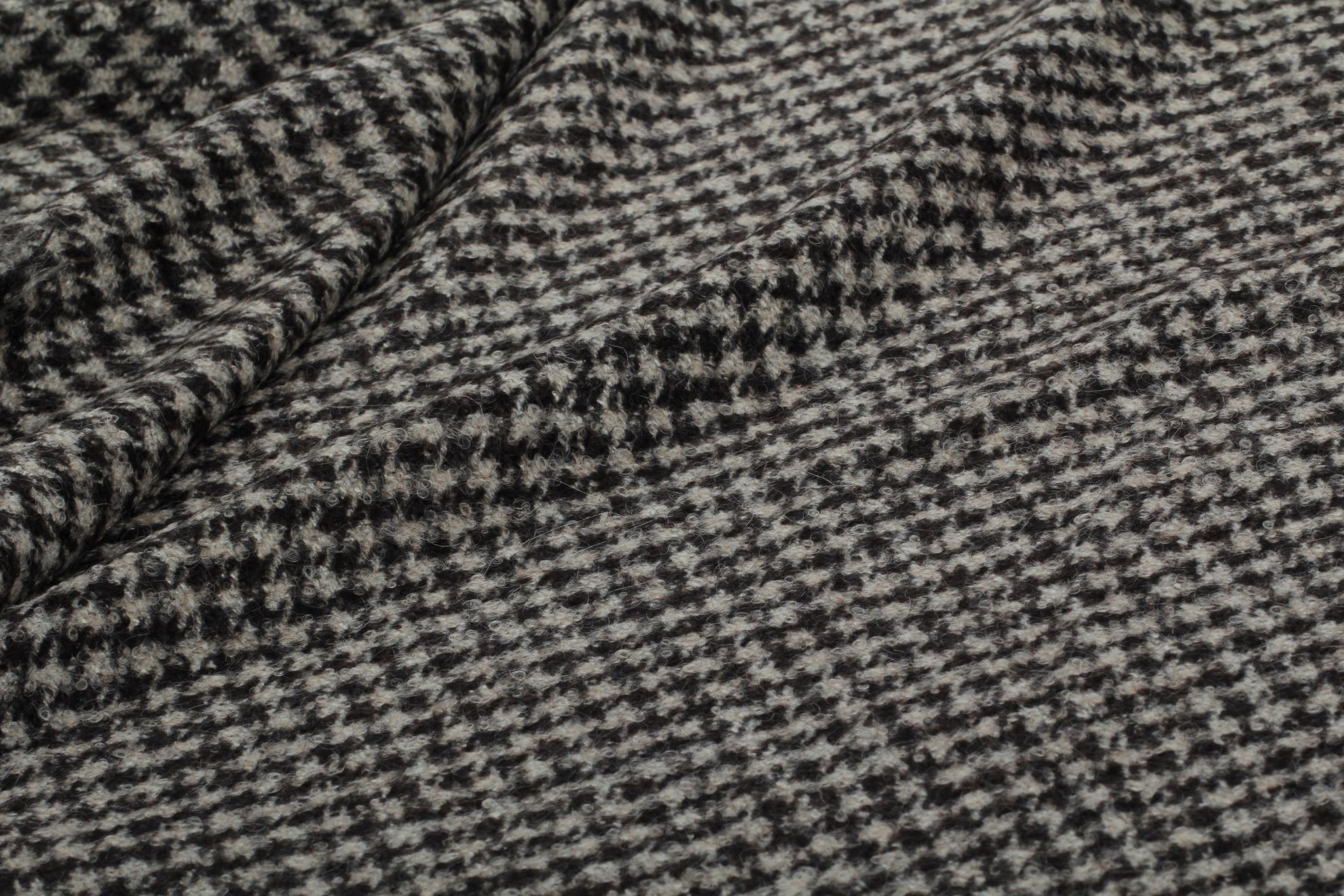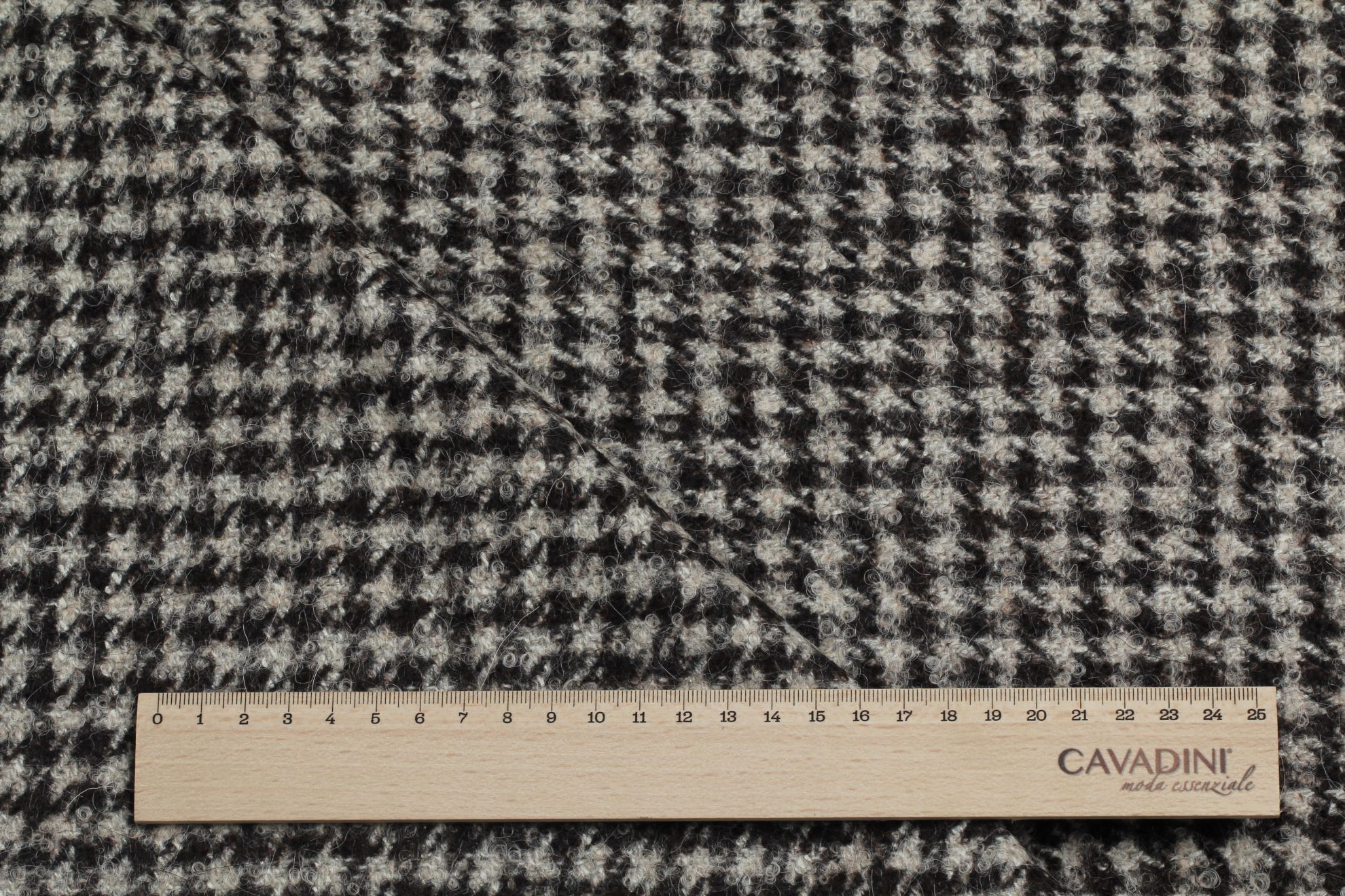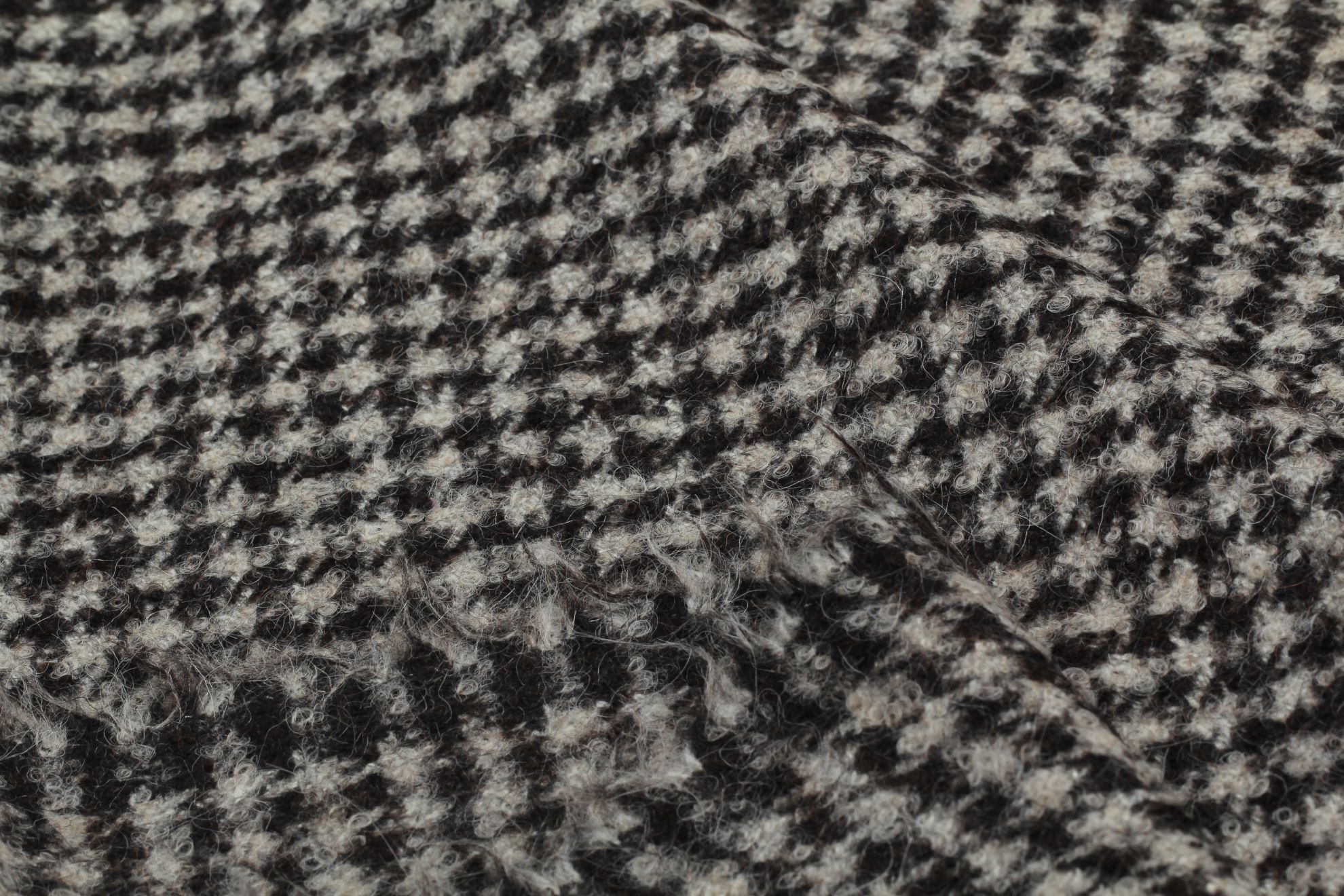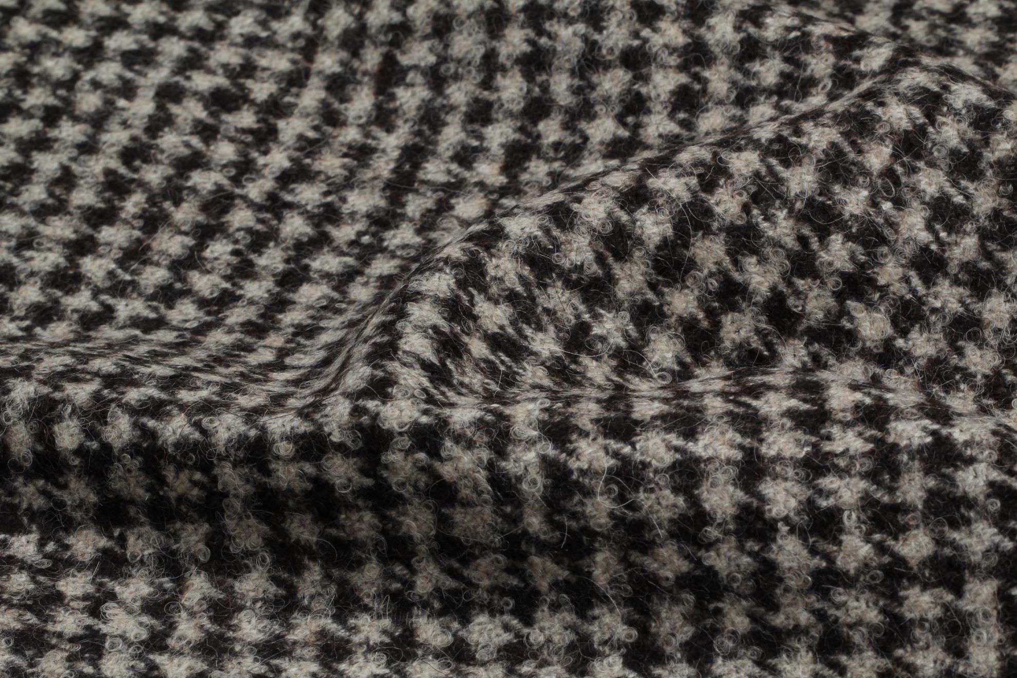 Luxusní kabátovka se vzorem kohoutí stopy v barvě slonové kosti a hořké čokolády s jemným vlasem. Velmi hřejivá pro své složení i vyšší gramáž, je poddajná a dobře se tvaruje. Vhodná na kabáty, kabátky.