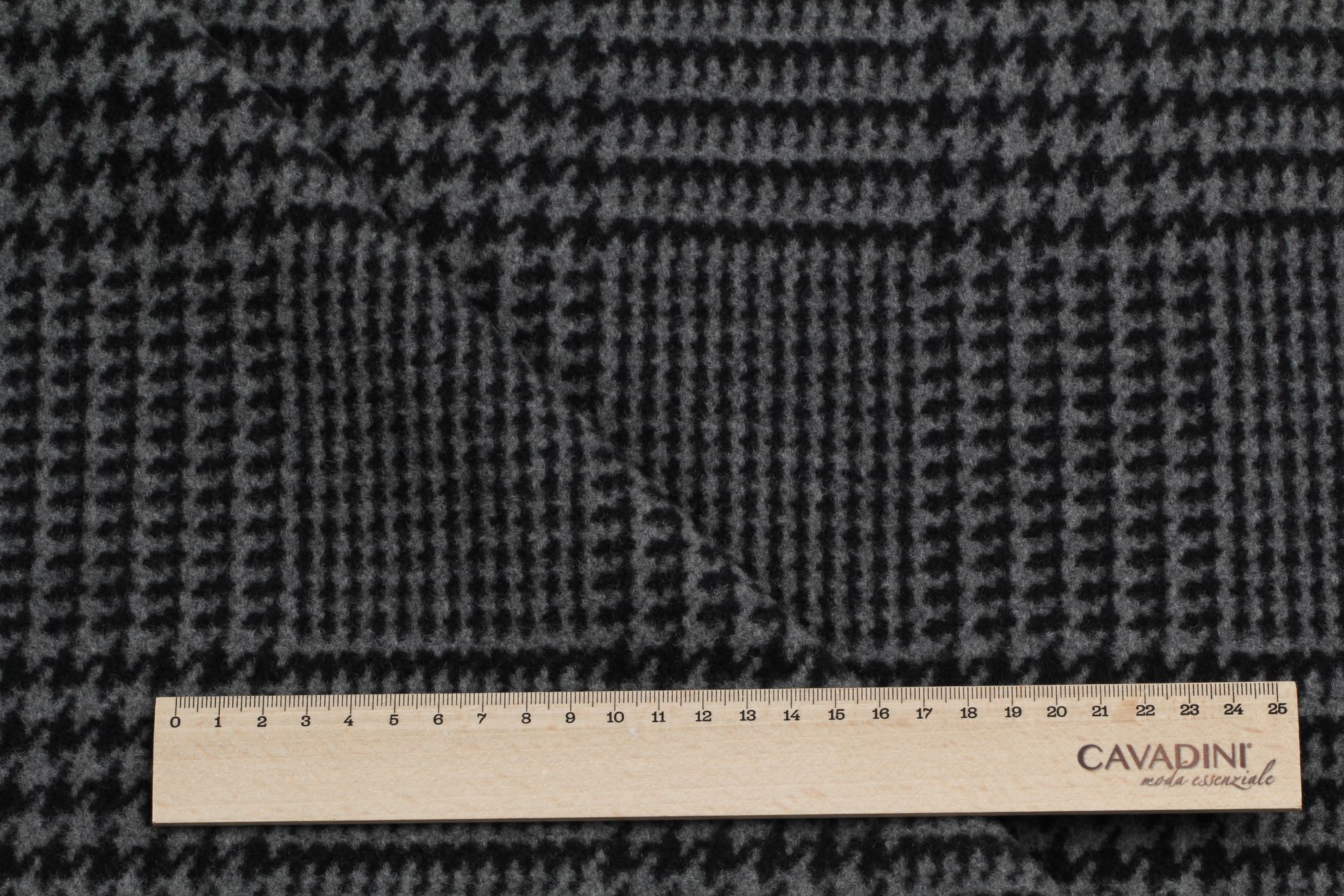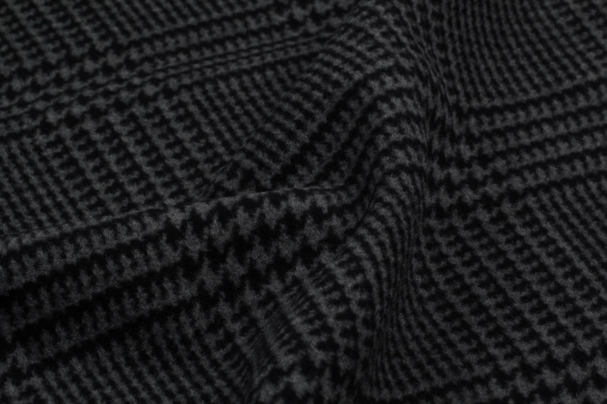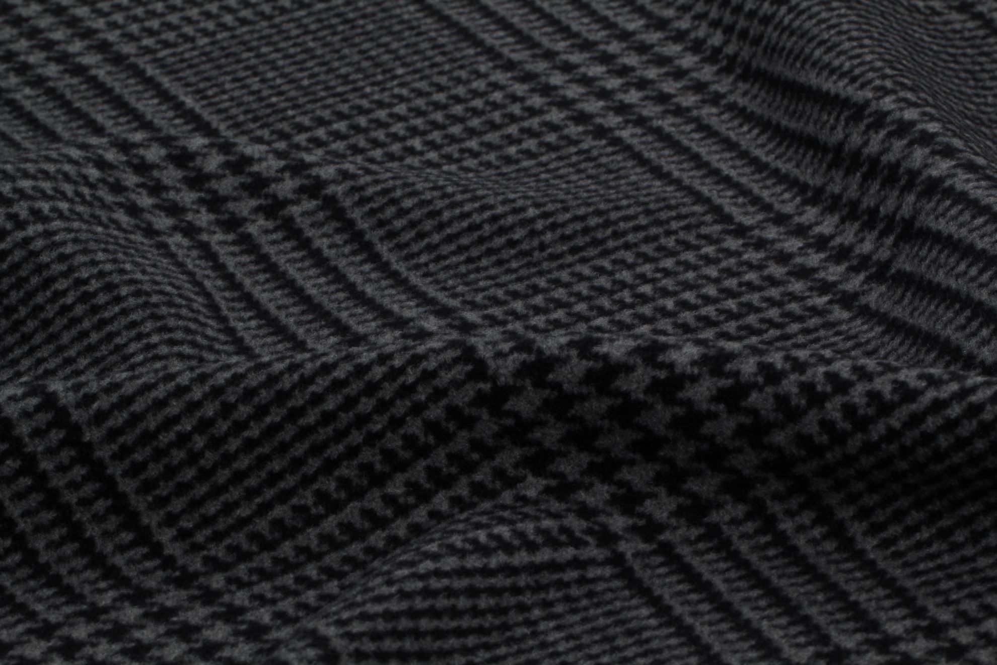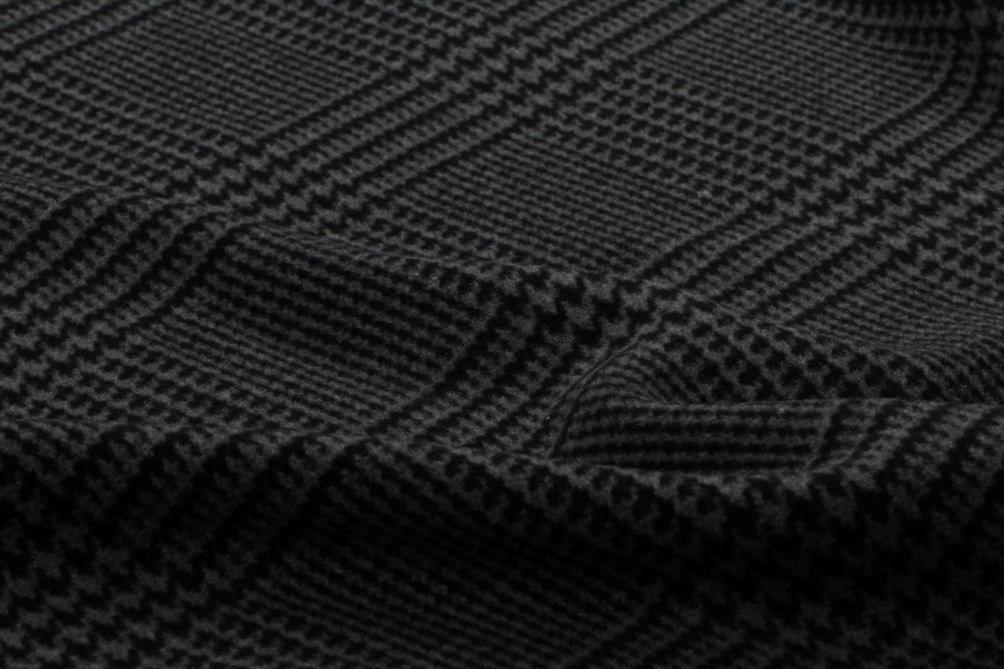 Kabátovka z hustě tkané vlny s klasickým kárem "Principe di Galles". Nadčasová kombinace černých a šedých barev, velmi hřejivá vysoké gramáže. Doporučujeme na kabáty, kabátky a kabany.
