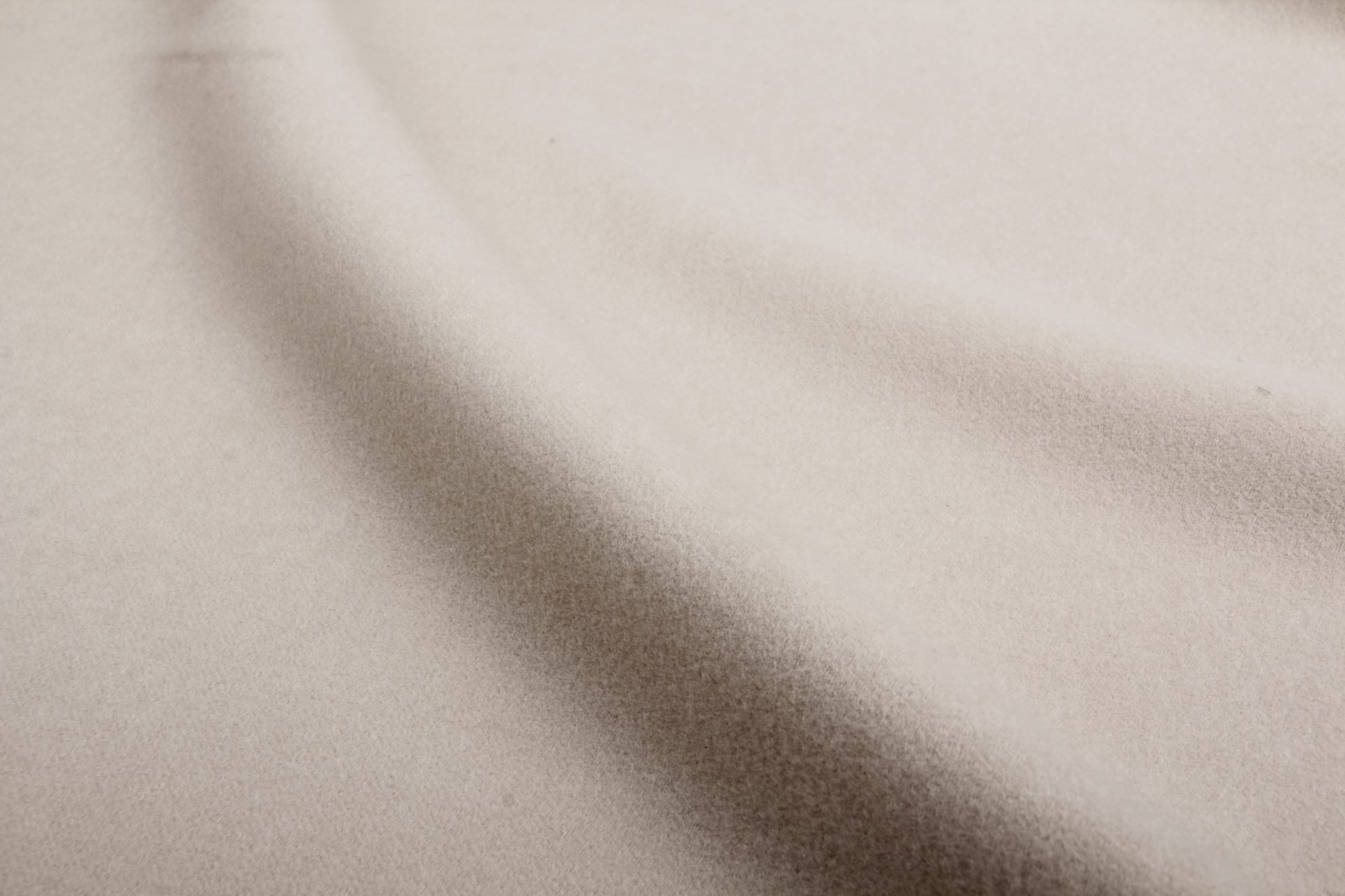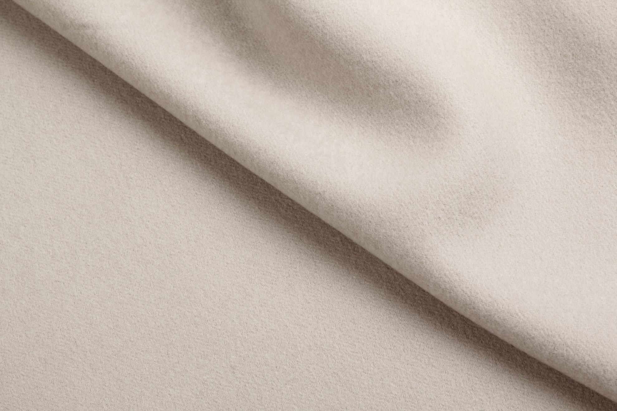 Nadýchaný, oboustranně otvíratelný kašmír ve smetanovém odstínu je předurčen pro nadčasové modely. Dlouhý kabát, kabátovou vestu nebo krátký blazer.