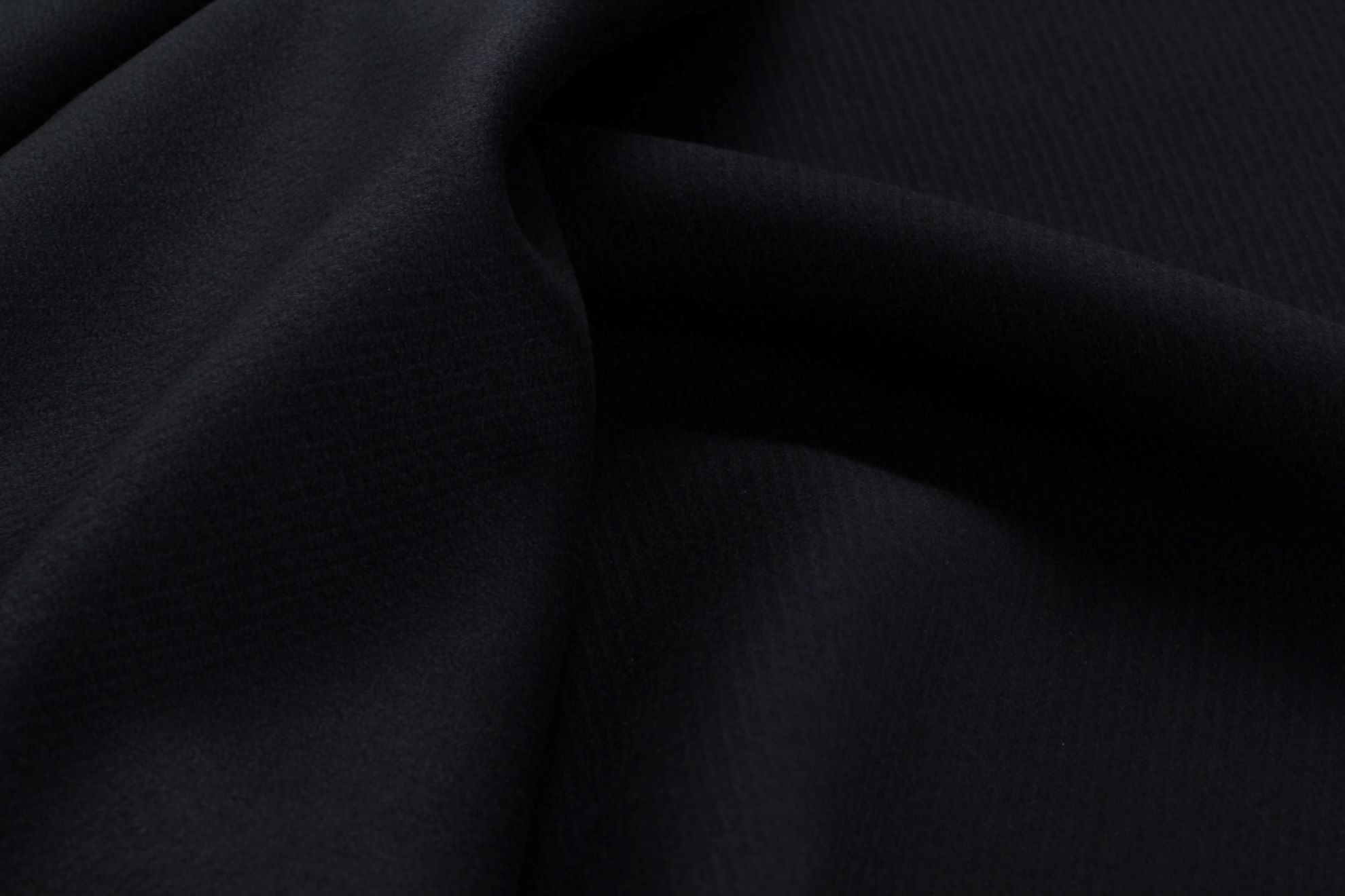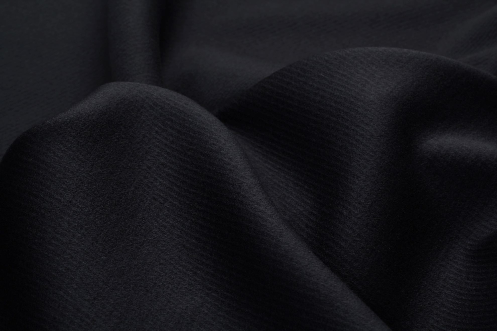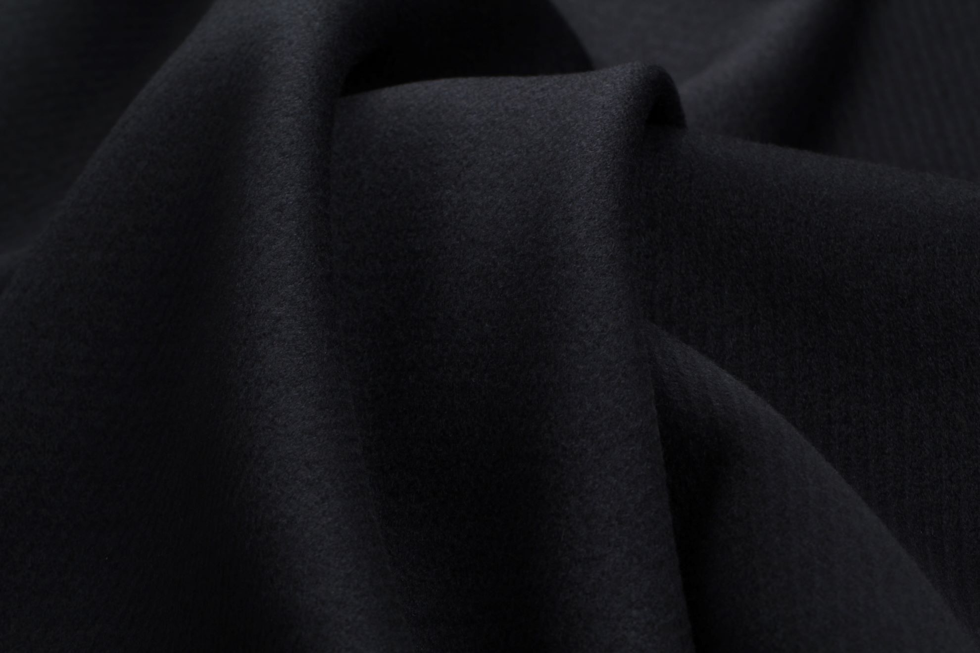 Luxusní kašmír double v ocelově šedo-modré barvě s jemným mřížkováním a perlově matného vzhledu. Je otevíratelný s možným využitím obou stran. Pevná struktura tkaní zajistí požadovaný tvar kabátu. Vhodný na kabáty, kabátky.