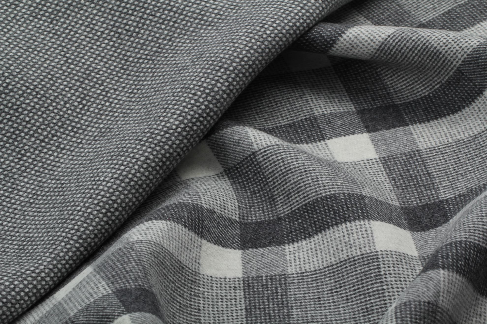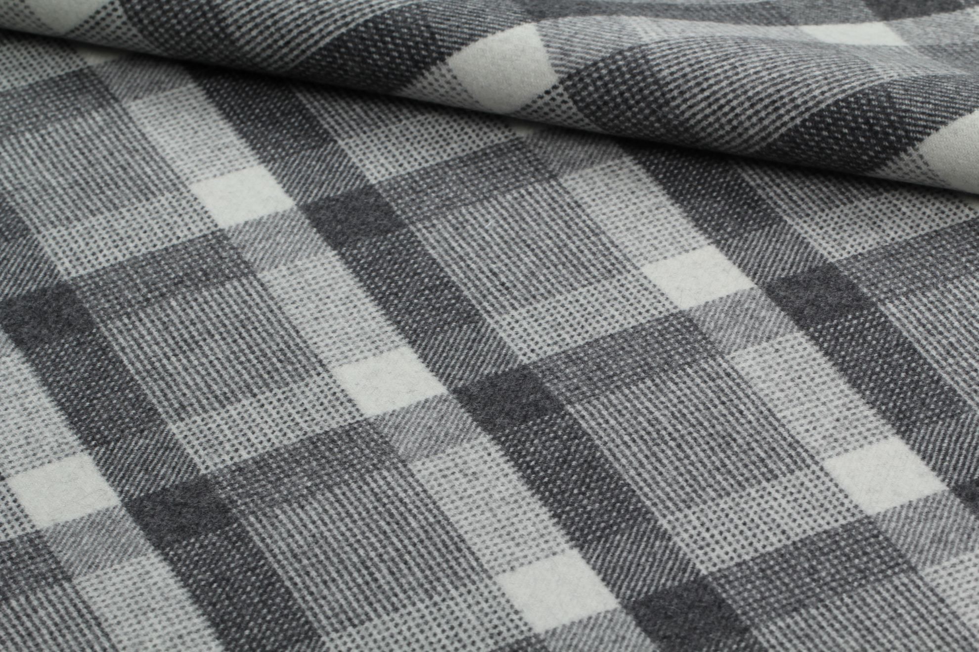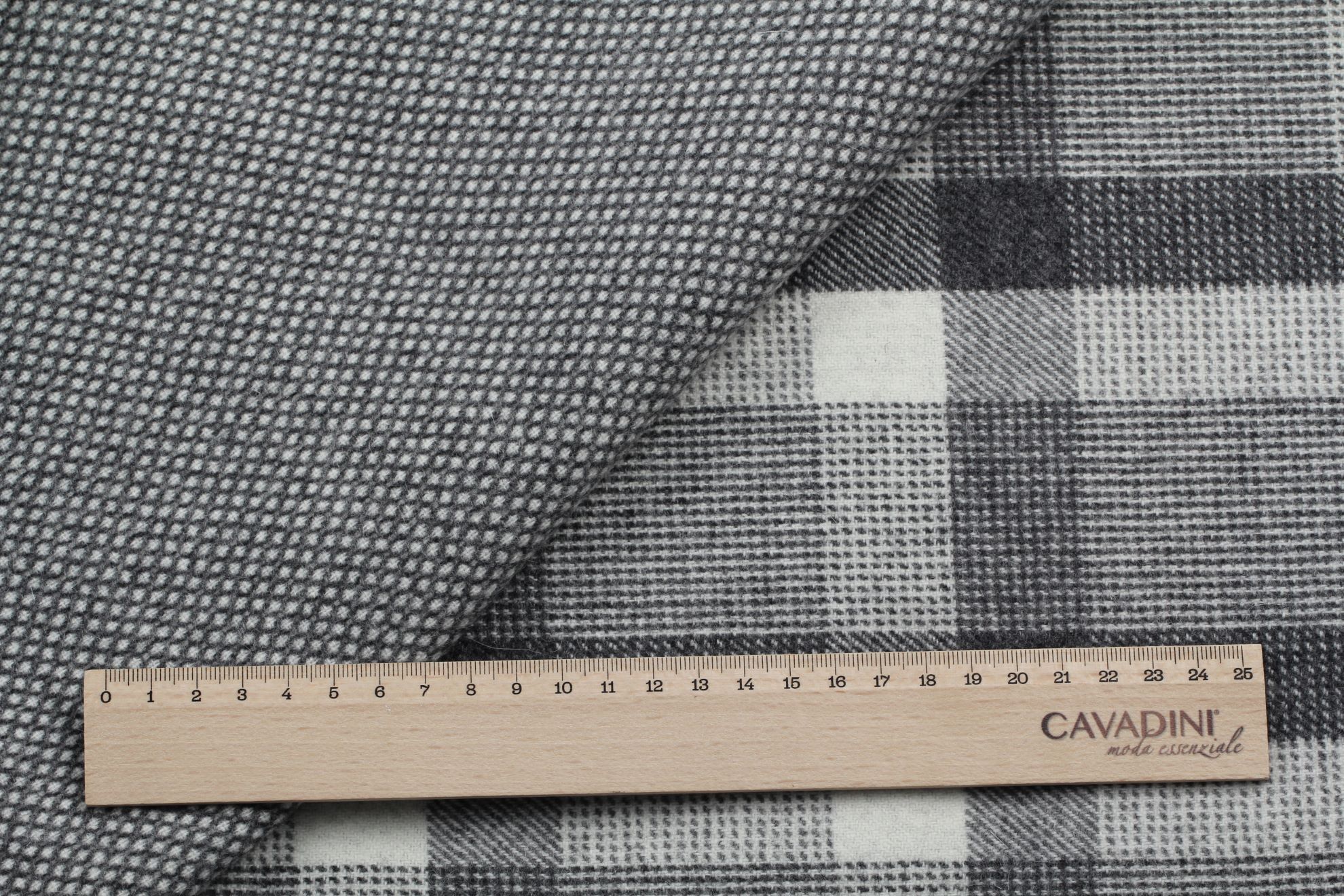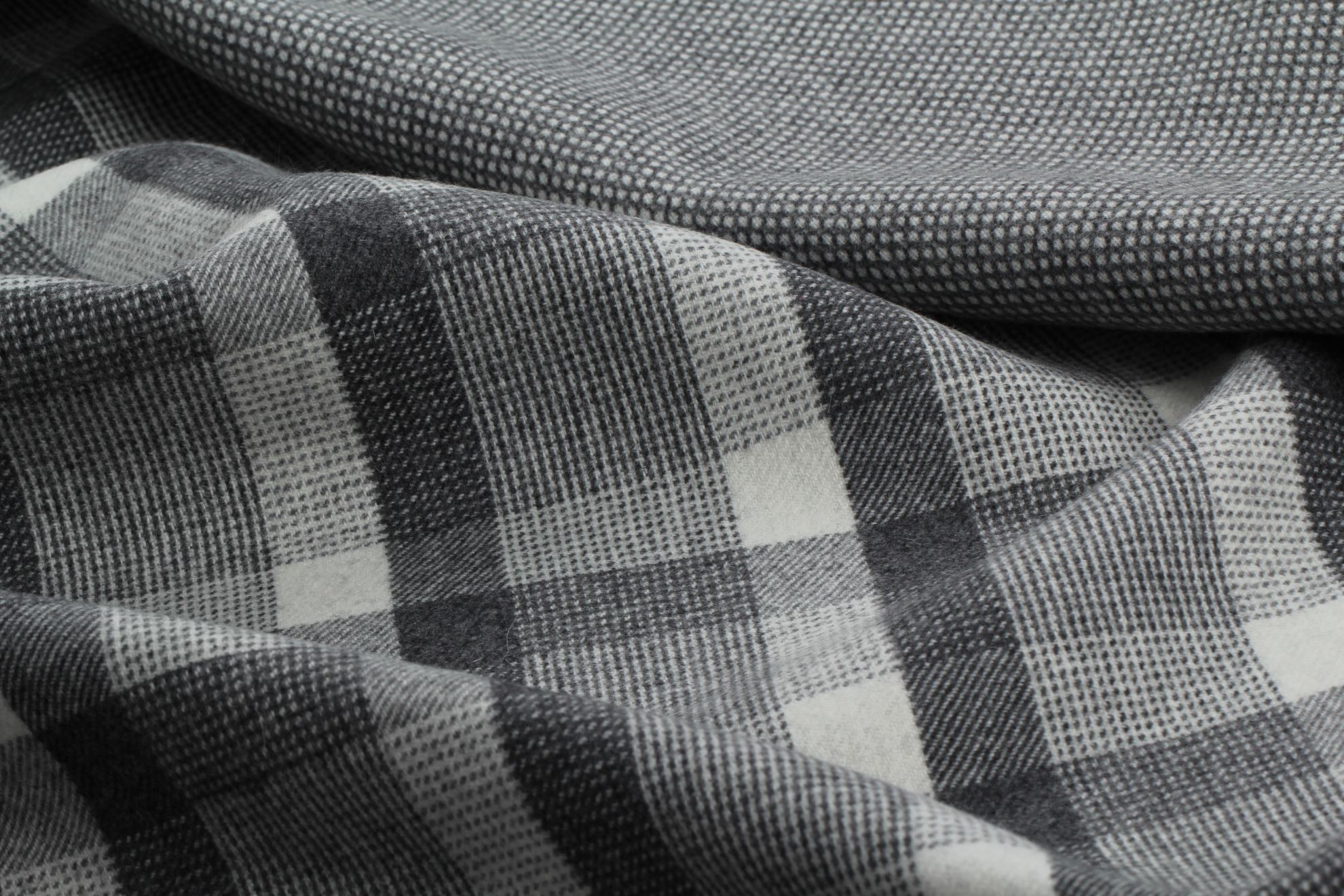 Oboustranná, hutně tkaná vlněná kabátovka ERIA v ojedinělé černobílé kombinaci vzorů. Doporučujeme na kabáty, peacoat, kabátky, kabany a kabátové vesty.