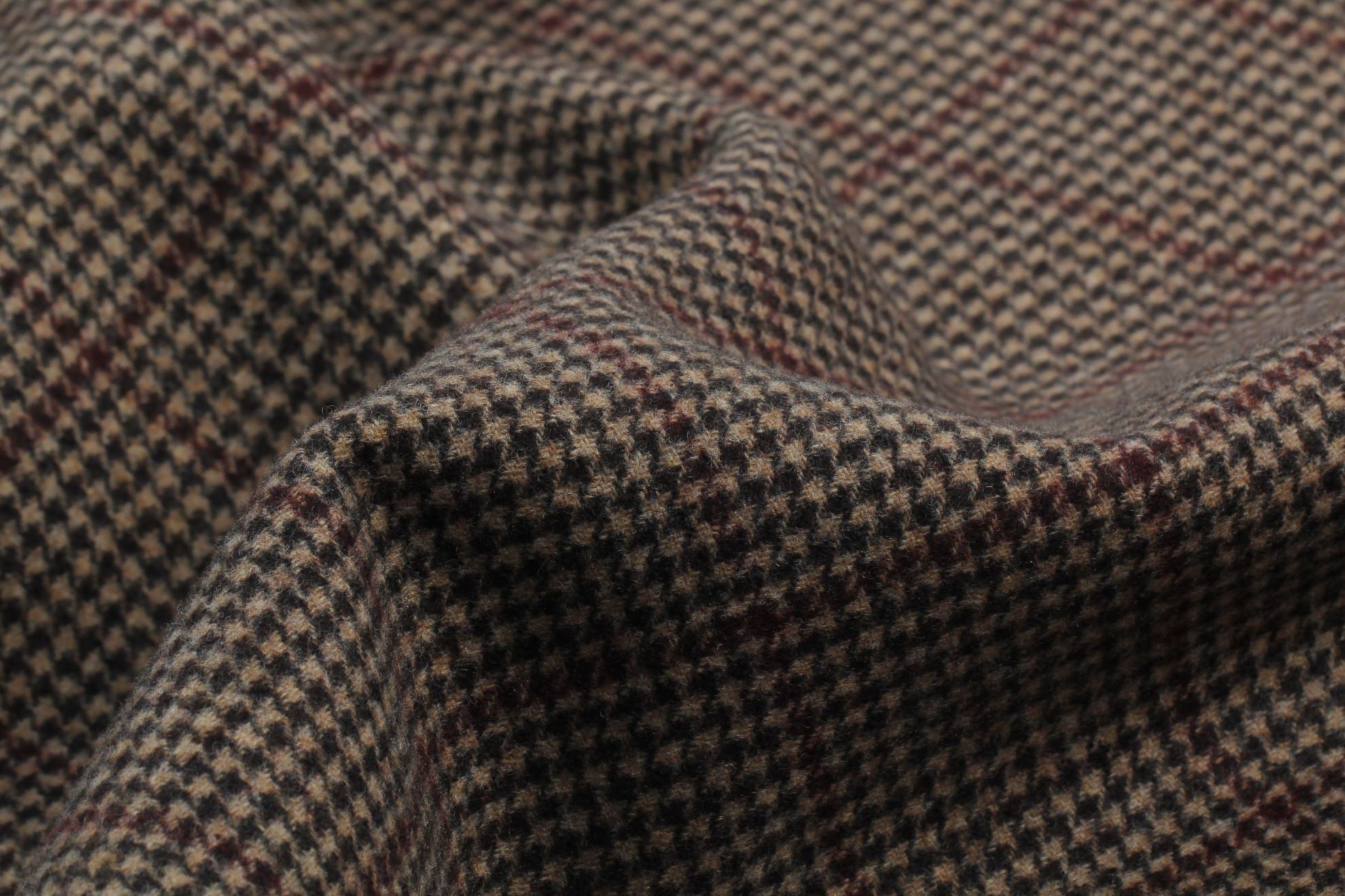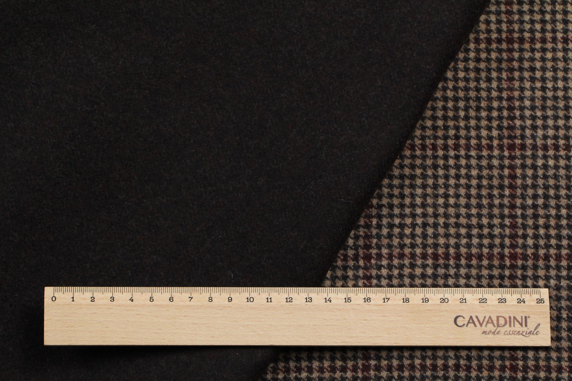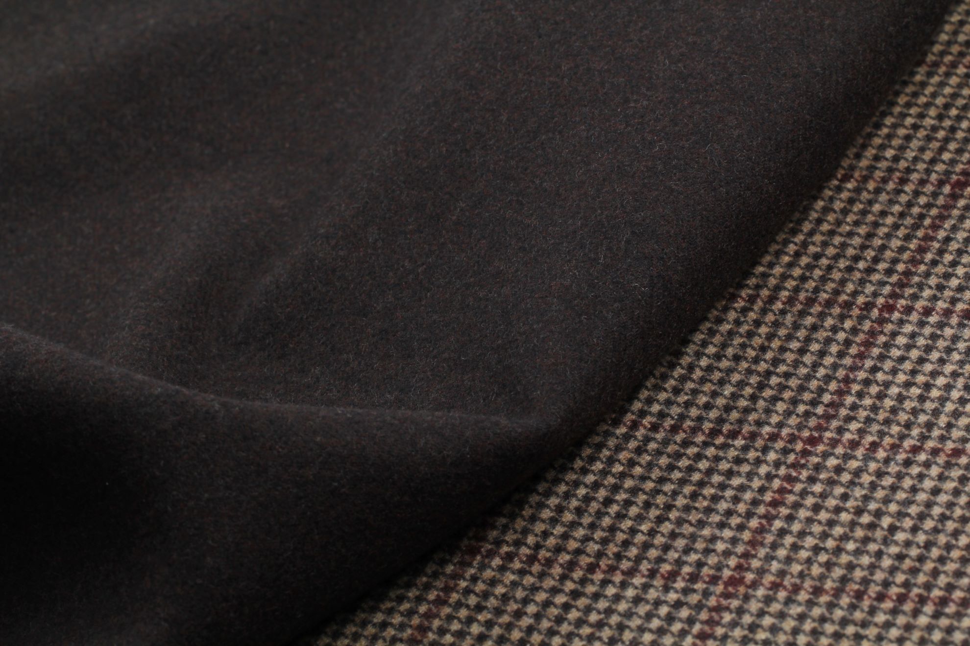 Vlněná kabátovka double PANNO oboustranná - čokoládové okenní káro s béžovou kohoutí stopou