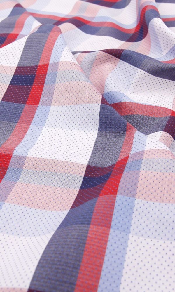 Velmi jemná propracovaná košilovka s kárem a vytkanými jemnými bílými tečkami bude vynikat především na košilých nebo halenkách.