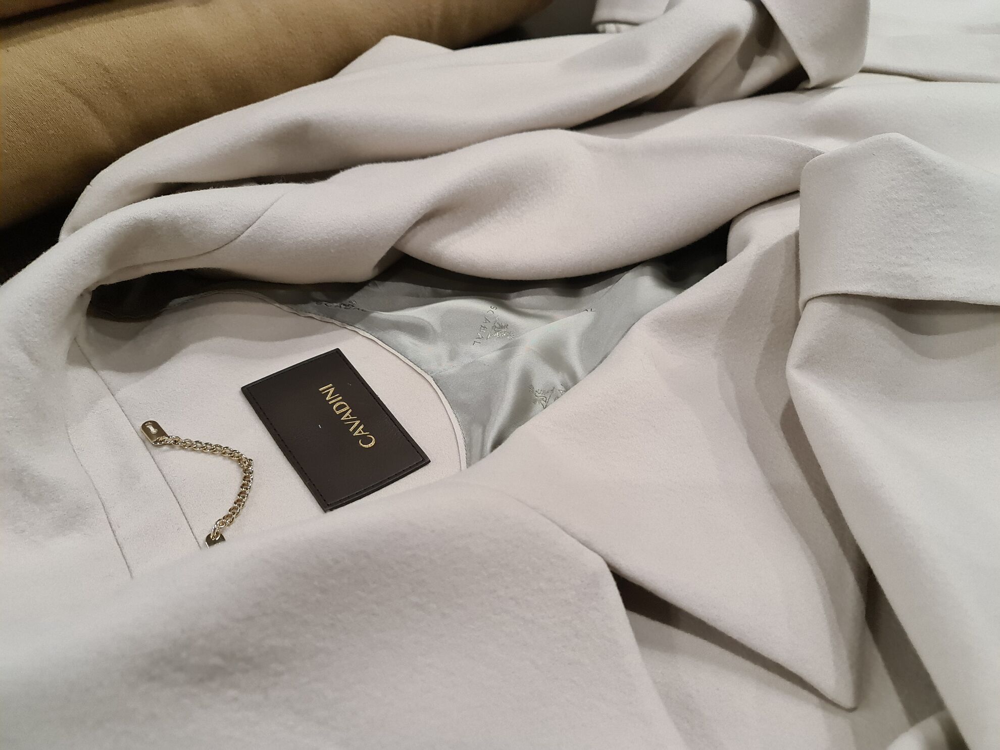 Nadčasový extra dlouhý vlněný zavinovací kabát v barvě slonové kosti