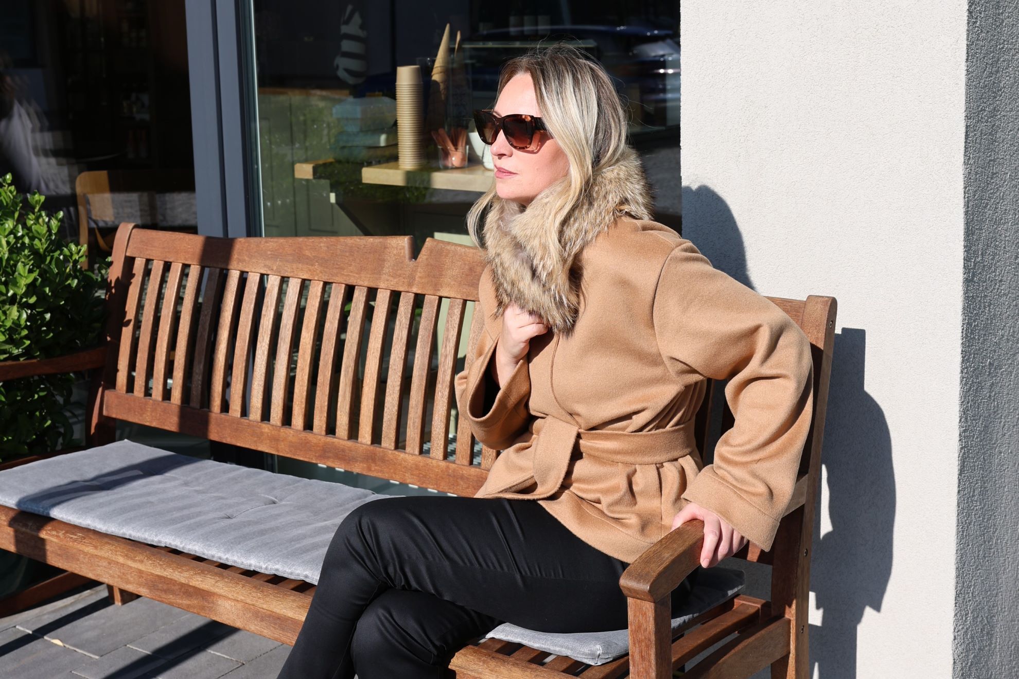 - Kapsy jsou ukryté v bočním švu, jsou plně funkční a přitom neruší celkový vzhled kabátku.