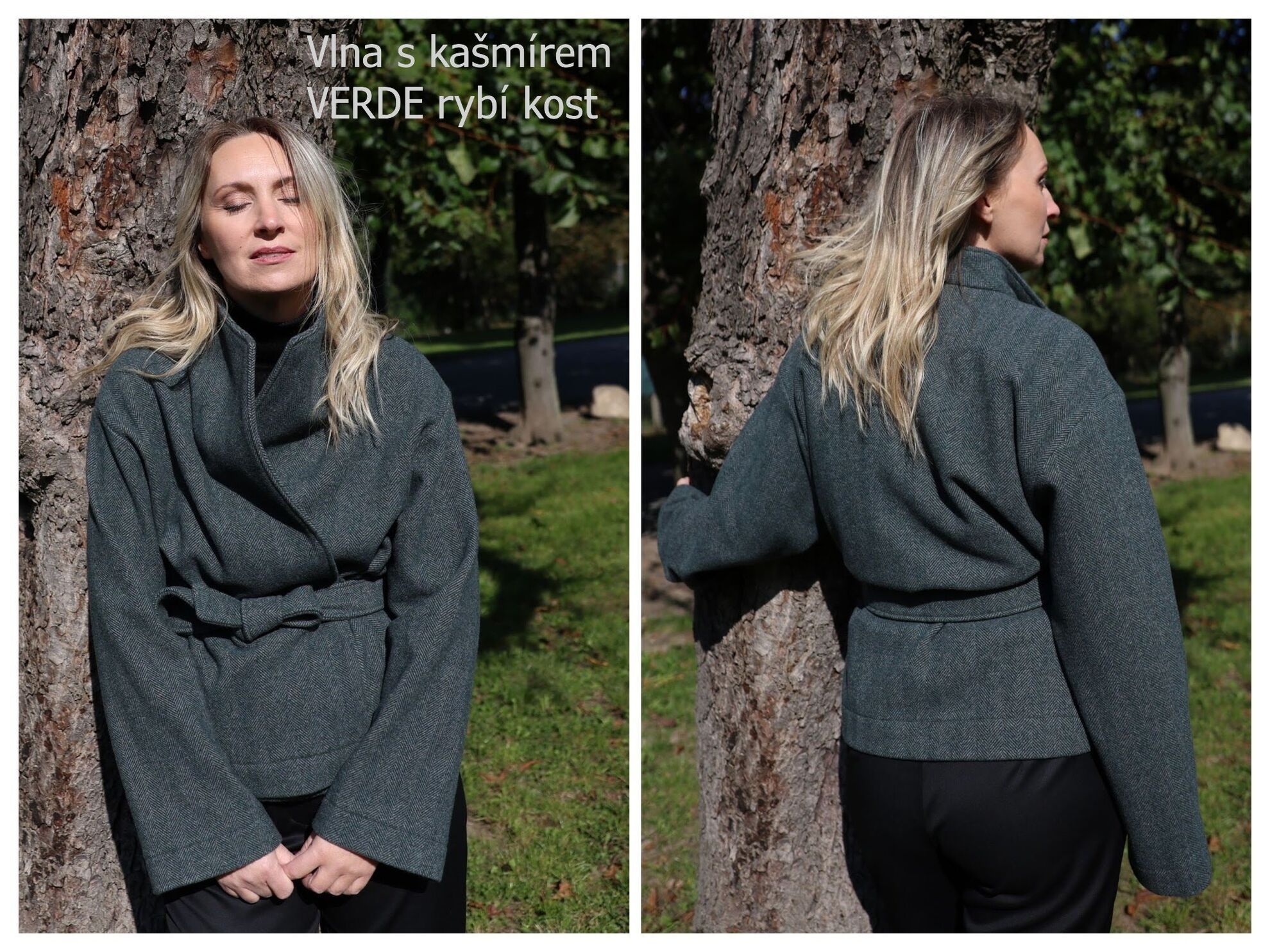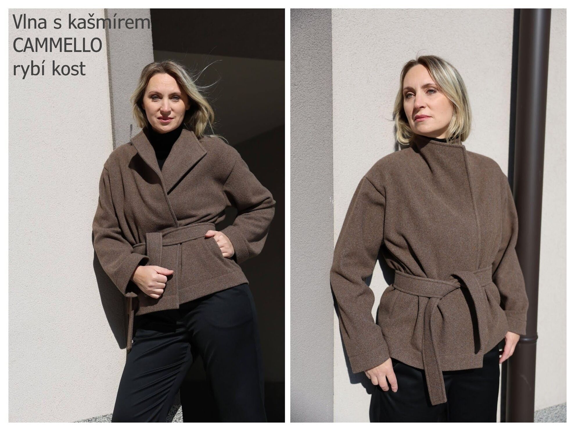 - Hřejivý vlněný tvíd v klasických dezénech rybí kosti nebo melíru v tónech tichého luxusu. Kašmír dodává hebkost, lehkost a spolu s vlnou je vzdušný, reguluje tělesnou teplotu a odvádí vlhkost.