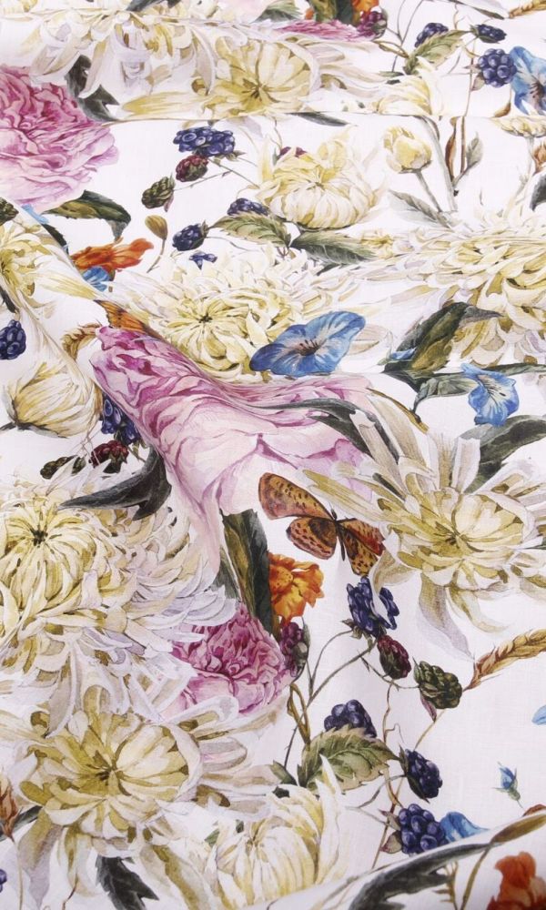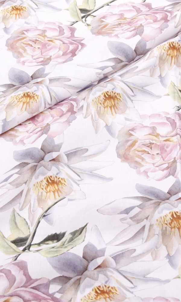 Len s motivy inspirovanými africkou pouští a horkým sluncem. Odlehčený len prémiové kvality je nepatrně transparentní, vhodný na halenky, šaty, široké kalhoty a další letní oděvy.